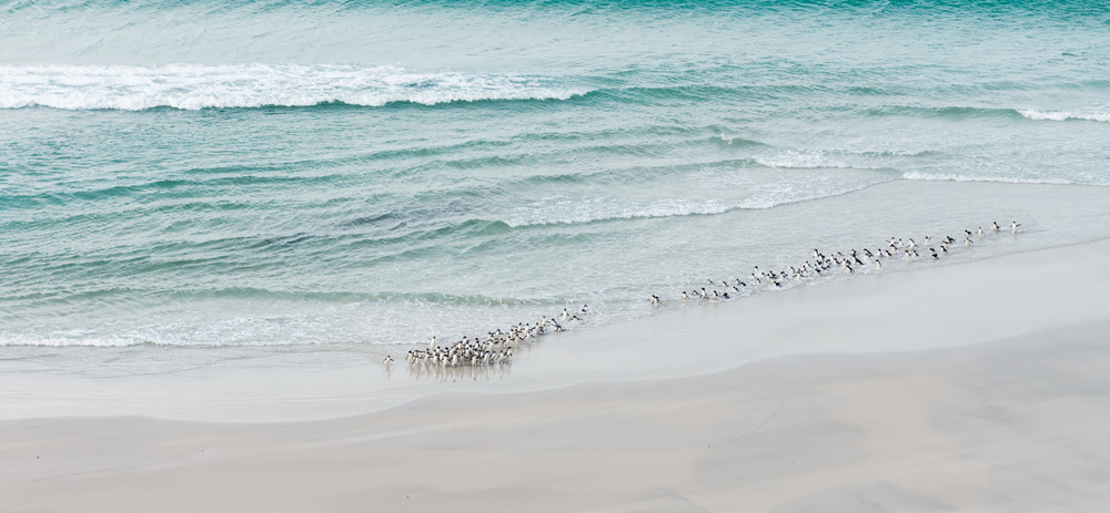 I have two images that are my most favourite because of my emotional connection to them The first photograph was taken in the Falklands. I was on a high cliff overlooking the beach. I spotted a raft of 60 or more so Rockhopper penguins coming ashore. Once they reached the shore they all started running to go their nests up on the cliff. I was so emotionally moved to see so many of them running on the beach to do the steep climb. It was an overwhelming moment to see this beautiful animal scape. This image won 1st prize in 1x.nature monthly theme.