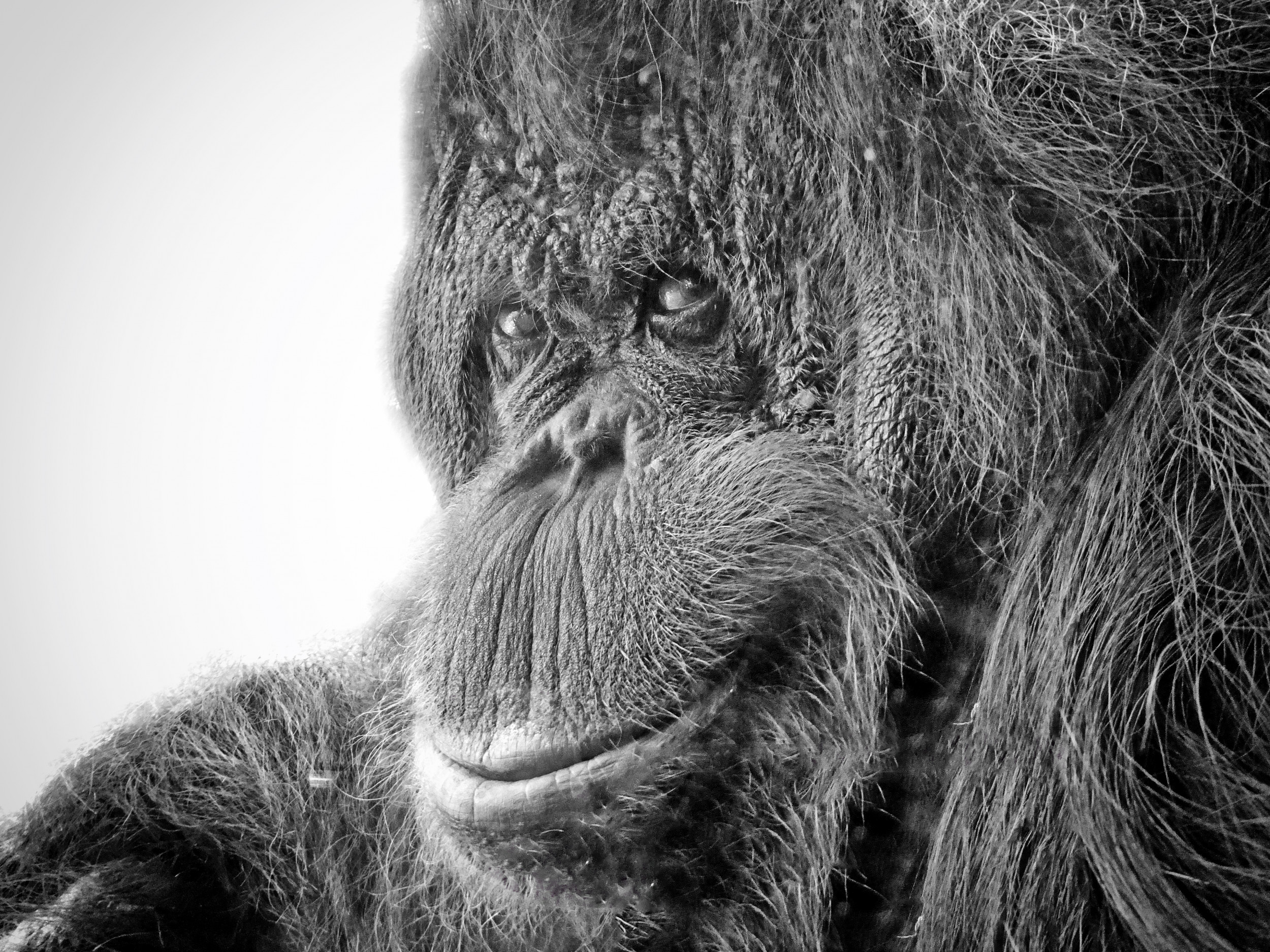 What is great with digital, is that you can get beautiful images, even if you missed the photo. I take for example, this orang outang, which after post processing, gives a surprising result in black and white.