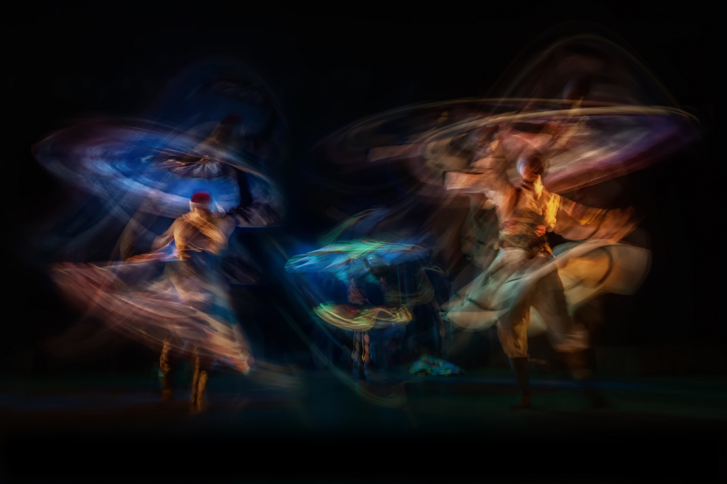 'Sins' is a single image taken with long exposure techniques. I photographed it at the Bibliotheca of the Alexandrina theater in Egypt on the occasion of the performance of the most famous Sufi band 'El Molawya'.