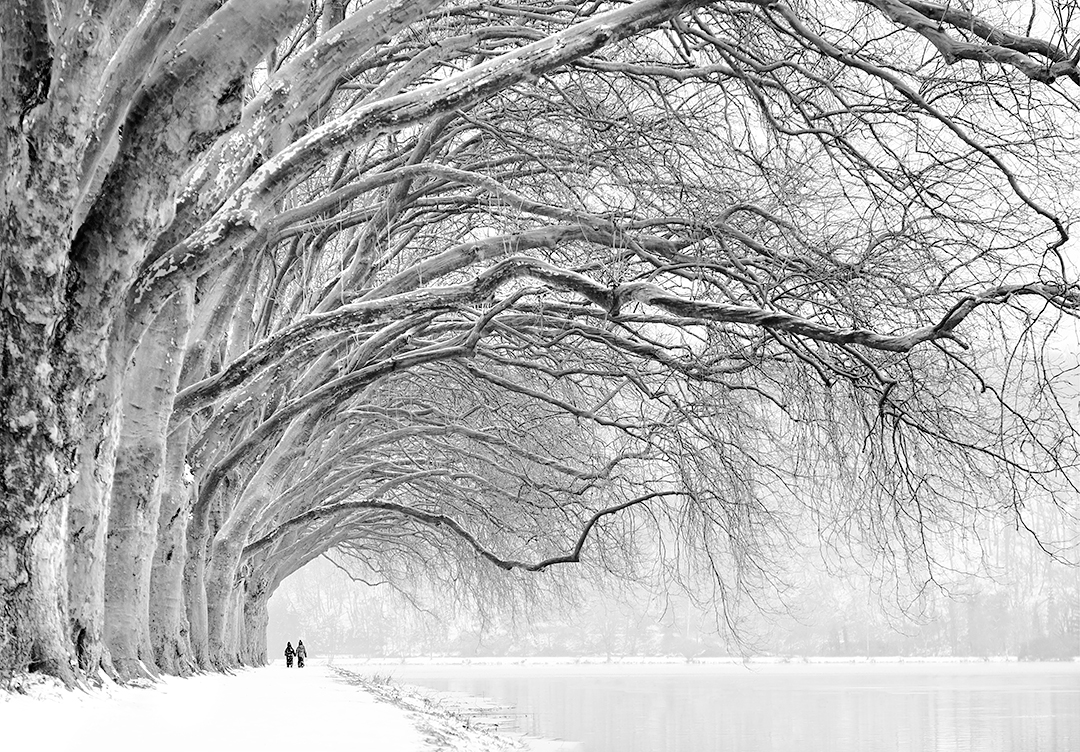 deep snowfall, I grabbed my two girls and we drove to a large lake with a long impressive row of trees swinging over its banks.