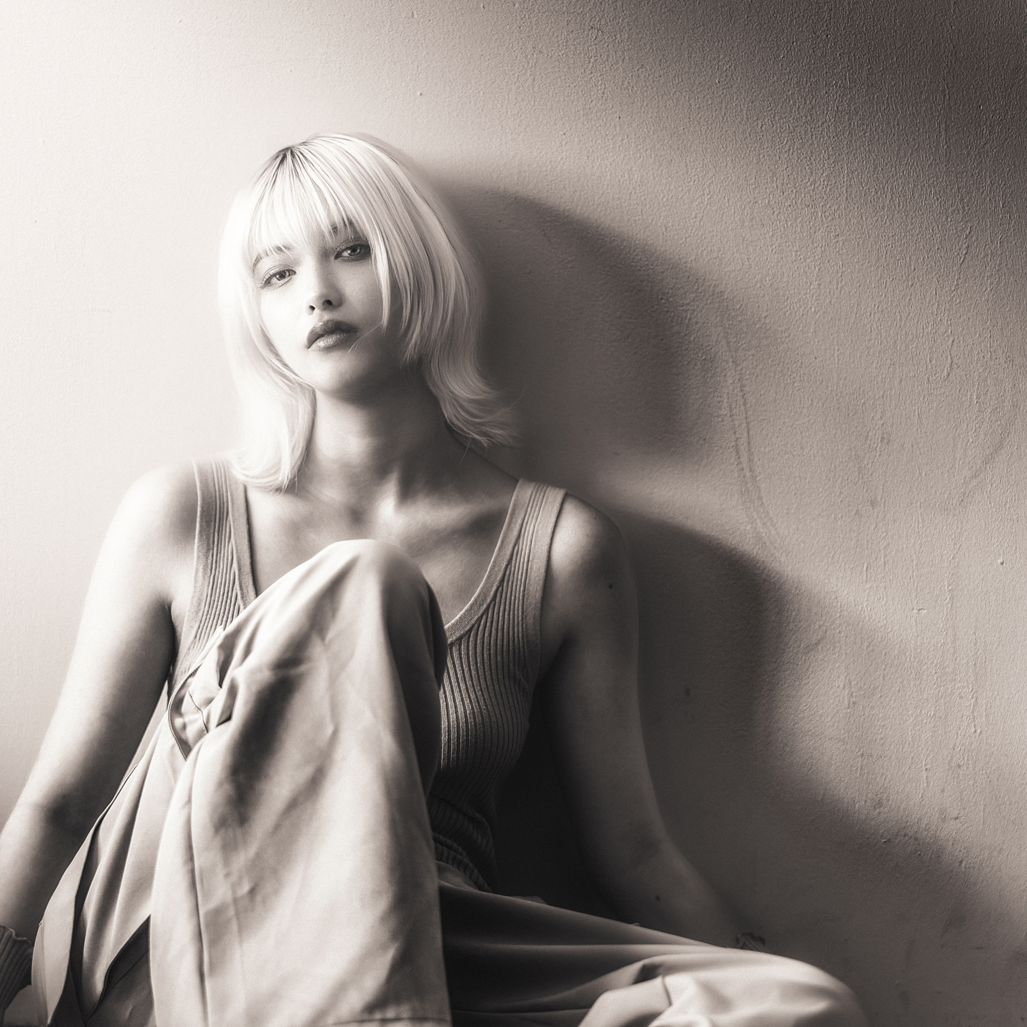 As the first step, I converted the image to black and white to highlight the model's striking make-up and gaze. I then edited it in Lightroom Classic with the tone curve to make it stand out.