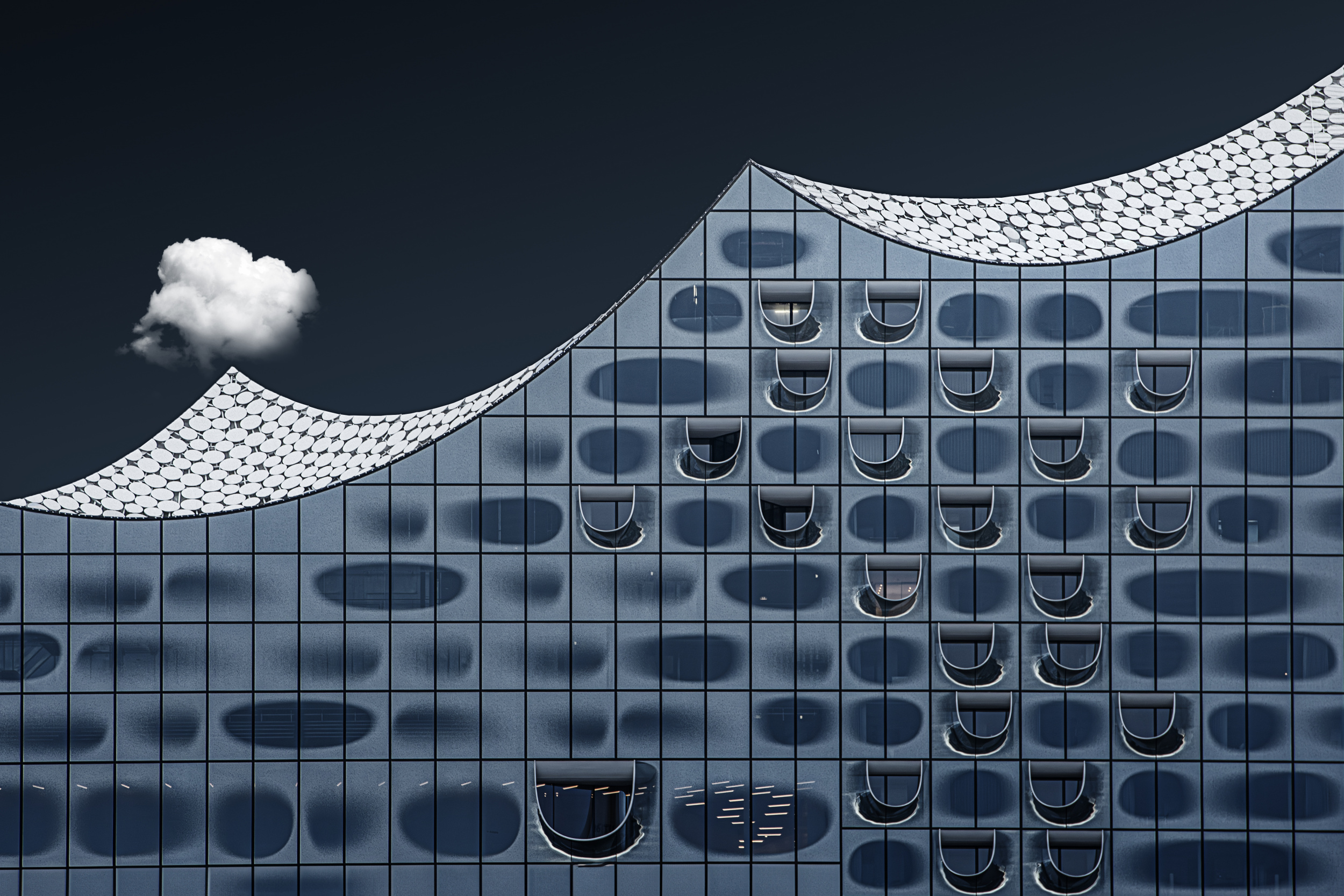We also had sunshine that day with a few small white clouds. Unfortunately, this resulted in strong reflections in the windows and I had to replace the sky with a gradient.
